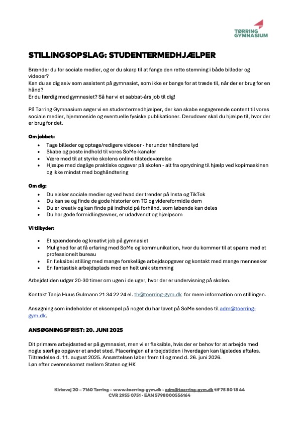 Kunne du tænke dig at blive en del af medarbejderstaben på Tørring Gymnasium?