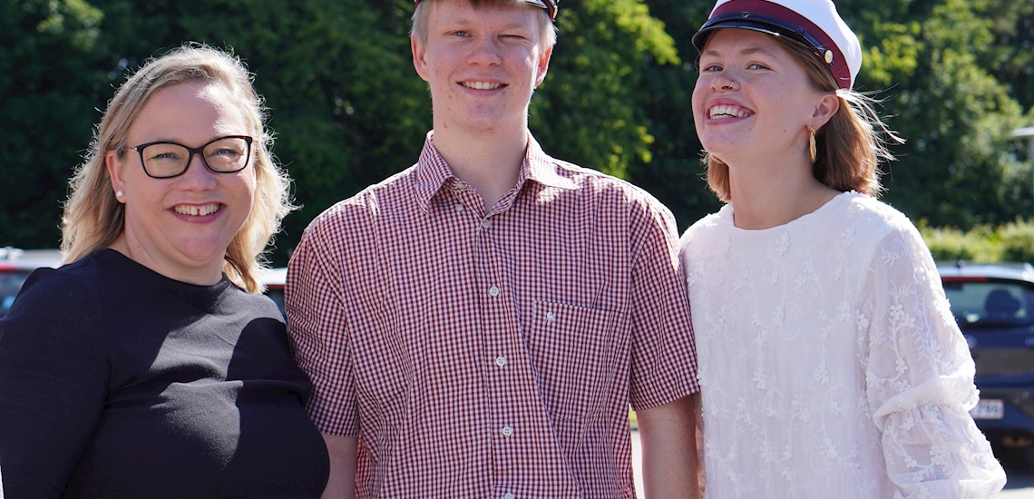 “Nu kommer de!” Råbte en af de spændte gæster, da årets første studenter drejede om hjørnet fra eksamensfløjen og med store smil tog imod jubelråb, varme knus - og en længe ventet studenterhue.