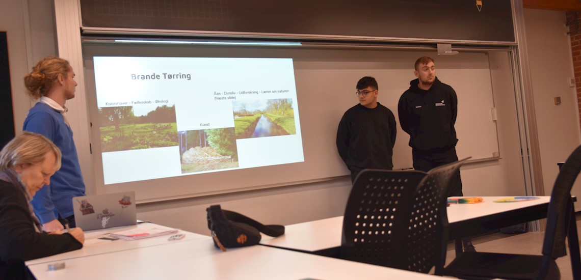 ...til den virkelige verden. Det er eleverne i 2.c et godt bevis på. Sammen har de udarbejdet forslag til Hedensted Kommune om, hvordan et nyt område i det såkalde Tørring Vest kan bygges. Klassen har tidligere på året været i Hamborg, hvor den besøgte en bæredygtig bydel med blandt andet algehuse. Her fik eleverne inspiration til, hvordan man kan “brande” Tørring, så den bliver en attraktiv by for pendlere og nye borgere. I går kulminerede de gode forslag i et “pitch”, hvor eleverne fik lov til at præsentere deres ideer for fire repræsentanter fra henholdsvis Hedensted Kommune, teambuilding-netværket, CoastZone og Insero Horsens.
