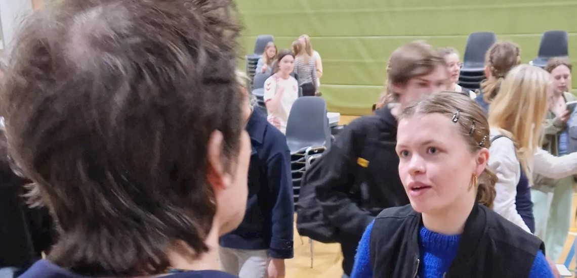 Dagens fællestime med Kristian Leth bød på levende dialog og et opløftende og håbefuldt indspark i forhold til unges bekymringer for fremtiden.