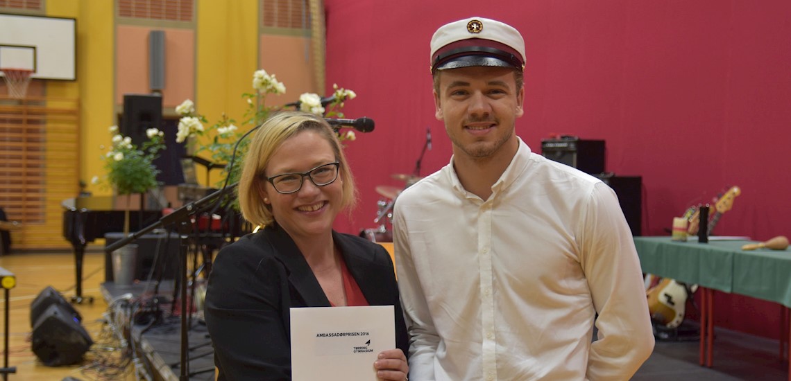 Sydbanks Rejselegat og Tørring Gymnasiums Ambassadørpris går i år til henholdsvis Maja Wolthers 3.d og Frederik Würtz Sørensen 3.a.