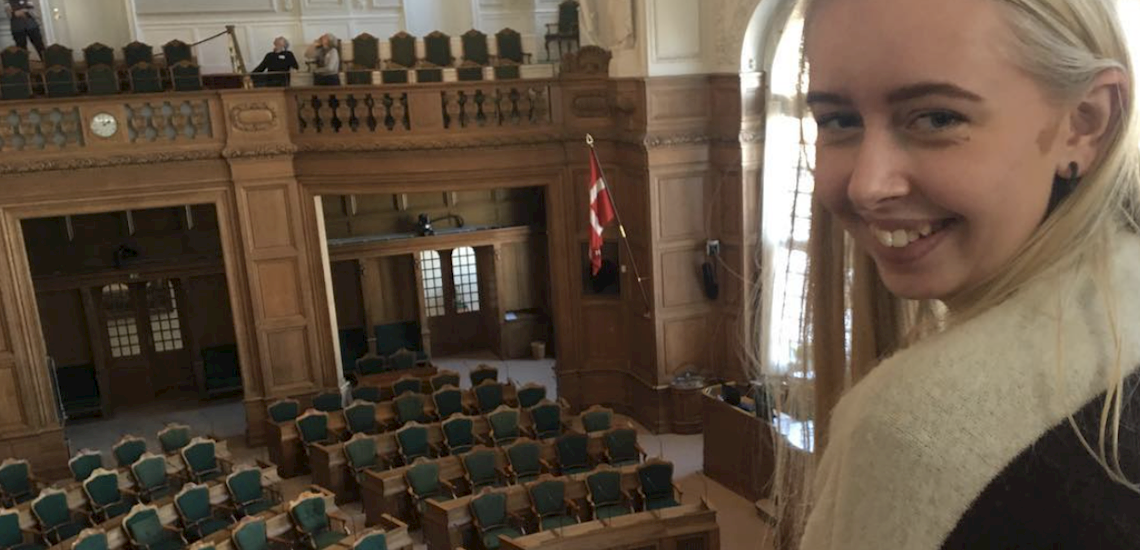 Alma Gøtzsche fra 3.b beretter fra rundvisningen i Folketinget: “Her lærte vi om fundamentet for det danske demokrati.” Hun kunne tilføje, at uanset om man som elev var enig eller uenig i deres politik, var rundviserne meget søde.